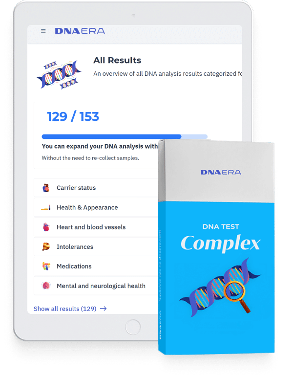 The purpose of DNA tests from DNA ERA is not the provision of healthcare. The information provided by DNA ERA is solely of an informational and educational nature, intended for personal development and the support of a healthy lifestyle, and in no case does it replace professional medical examination or advice. Before any diagnostic, preventive, therapeutic, or other medical decision or procedure, it is necessary to consult a doctor or another qualified healthcare professional.