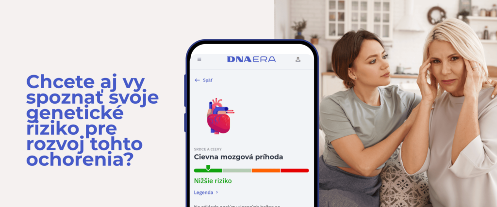 Prihláste sa do svojich výsledkov. Genetická predispozícia pre rozvoj cievnej mozgovej príhody je odteraz zadarmo dostupná pre všetkých našich zákazníkov. Zároveň ju bude mať vo svojej analýze každý budúci zákazník, ktorý vstúpi do sveta DNA s DNA Complex testom alebo DNA Health testom. Spoznajte svoje predispozície aj vy.