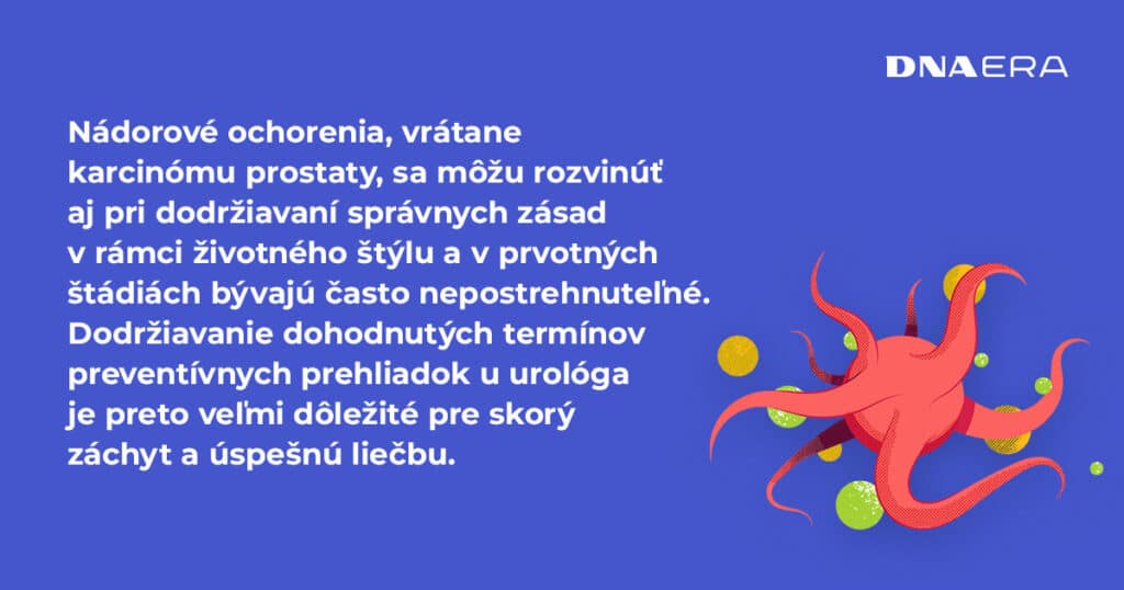 „Karcinóm prostaty je v súčasnosti druhé najčastejšie onkologické ochorenie u mužov a v niektorých krajinách predstavuje dokonca najčastejšie. Podľa WHO sa ročne nájde rakovina prostaty u 1.200.000 mužov vo svete. Preventívna prehliadka u urológa je najlepšou voľbou pre mužov po 50-ke. Možný skorý záchyt dokáže zachrániť život. Vyšetrením u urológa v kombinácii s výsledkom testu od DNA ERA je možné individuálne nastavenie potrebných kontrol. Dobrou správou je, že pokiaľ je toto ochorenie zachytené v prvom štádiu, je liečiteľné v približne 80 % prípadov. Prevencia a liečba karcinómu prostaty patrí medzi jedny z nosných tém Európskej únie na najbližších 10 rokov.“